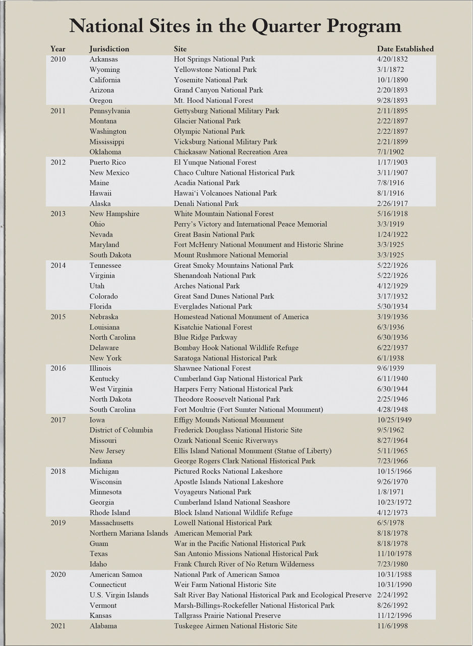 HE Harris Coin Folders make it easy to learn about and collect the coins that make up the foundation of any serious collection. Each folder offers valuable historical and cultural information about the coin denomination and features crisp, full color photographs of classic coins. Every Harris Coin Folder opens flat to display an entire collection at once, then close back to book size for easy storage. Check out our National Park Quarter Release Schedule page to see all present and future Quarter release dates.